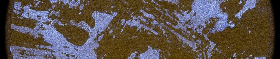Elmer’s Carpenter’s Interior Wood Glue is no doubt the best, despite the awkward name. Not only does it leave a lustrous but not-too-shiny sheen over paper and canvas, as far as I can tell it lasts forever. Things that aren’t glued properly fall apart. This used to drive me crazy until I noticed the caramel-colored traces left behind. Four new scans of this effect are shown here.
