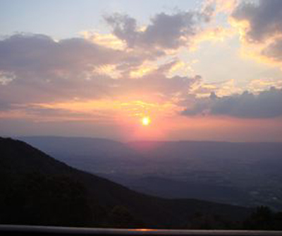 Here’s the good word from Mr. Burnett: “The original photo was taken at sunset, overlooking the Shenandoah Valley. I imagined that different life forms may perceive light waves differently than we do and sought to simulate those portals of perception, thus exploring the many possibilities of how a sunset is actually experienced depending on who or what is perceiving it. It’s also fun just to mess around with Photoshop and find a happy place to stop.” Enjoy the view.
