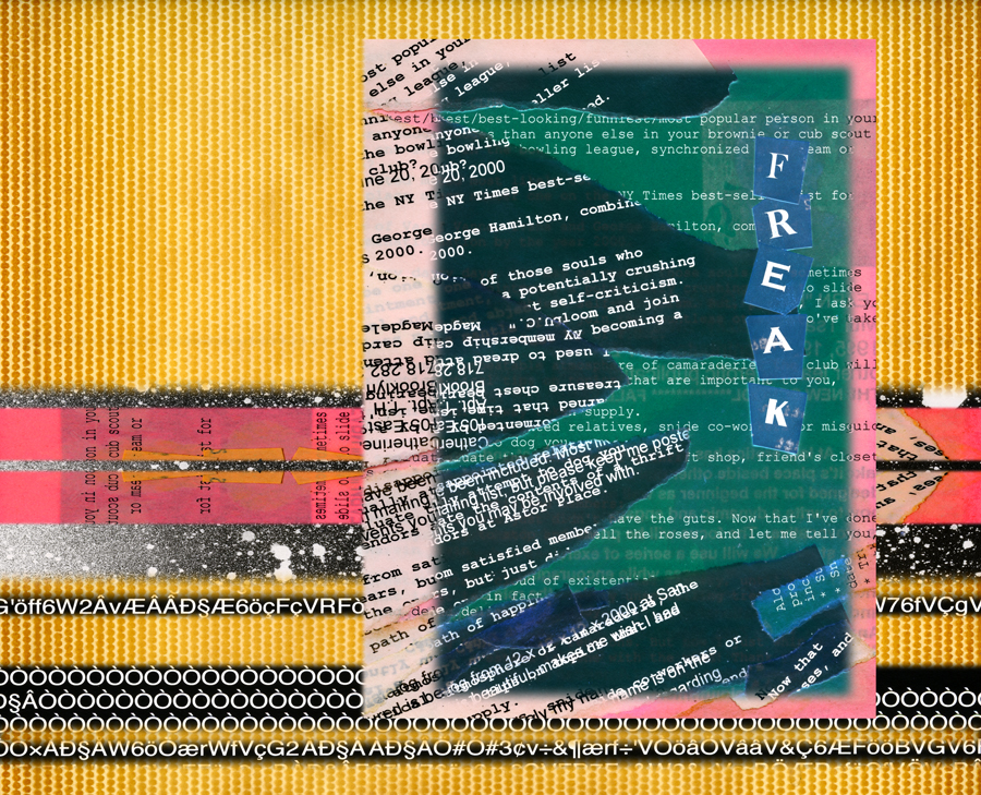 Then the search for new resources began, and the hard part about that was limiting the choices. This session features some exciting elements: cardboard from 1937; a page from an old (circa late 1980s) photo album that fell apart; spray paint on dot-matrix printer paper; and, of course, the original Sift, Freak and Reap.