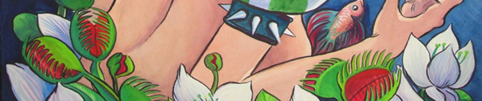 Here’s the good word from the artist: “My subject matter can often be grotesque, and I exaggerate the emotions of each piece. There is a dark humor and irony hidden for the viewer to find. Things may appear light-hearted from afar, but upon closer inspection, there is a darker truth. I take inspiration Suck My Kiss Detail © Kristen Terranafrom the German Expressionists, who used their art to comment on the ugliness that they saw within society. I enjoy using art in a similar way, to make a statement about vanity and the pressures on women today.