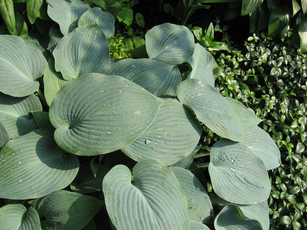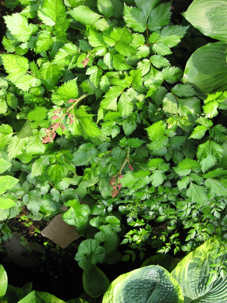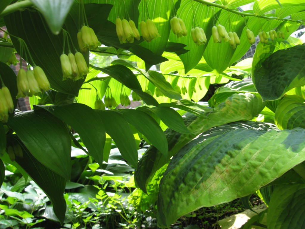 The image titles tell a story, too. Backstory to the story, aka, history … Years ago there were two large mulberry trees in this area and my friend Mona began adding shade-loving plants: violas, Solomon’s seal, ajuga. Then the trees were cut down and we got more extravagant with lilies, hostas, peppermint. It was looking really good.